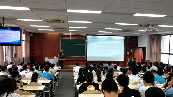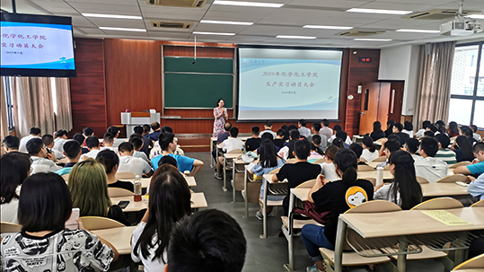 2019年9月2日下午15:00, 于重庆大学虎溪校区D1534召开2019年实习动员大会。大会由2016级本科辅导员伍丽老师主持,出席本次动员大会的有学院党委副书记李泽全、化工带队老师周志明、材化带队老师钱力及左赵宏、制药带队老师肖尚友、应化带队老师丁炜及罗志勇。