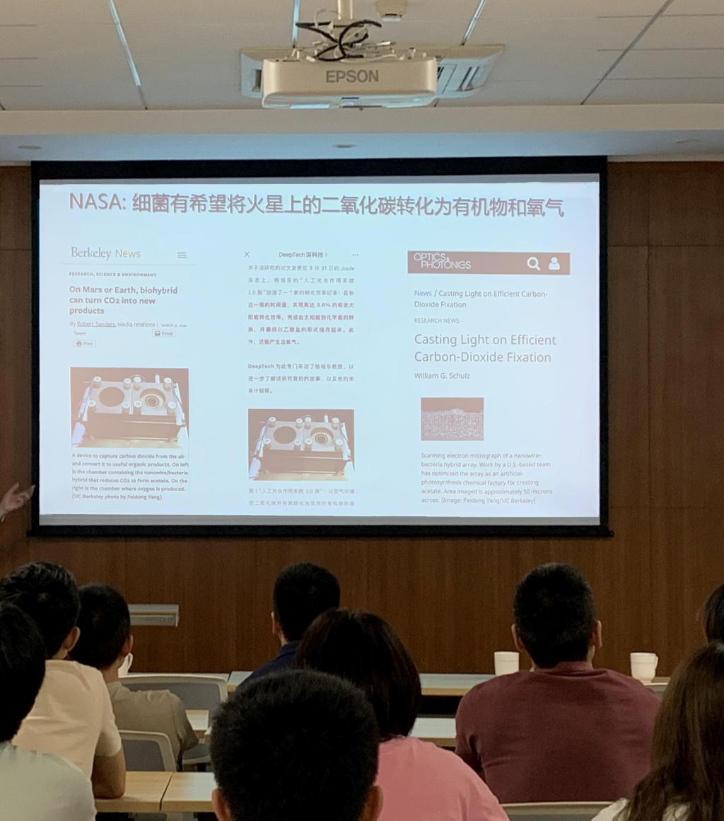 此次讲座体现了微生物与纳米杂化材料耦合的研究在发展电化学、光电化学及实现“火星栖居”中的重要性。此次讲座内容生动形象、乐趣横生,激起了老师同学们的强烈兴趣,反响十分好。讲座后苏育德研究员与相关老师和同学进行了进一步的探讨和交流,老师和同学们感到受益匪浅,整个讲座在同学们热烈的掌声中结束了。