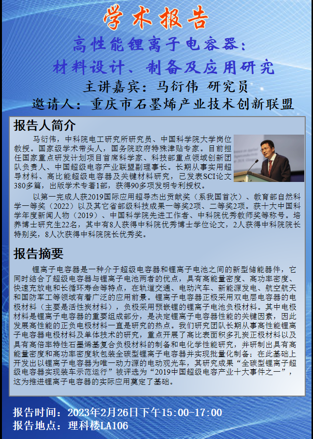 高性能锂离子电容器: 材料设计、制备及应用研究