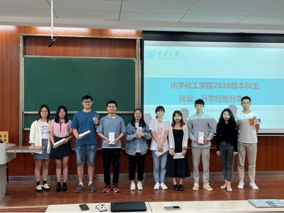 2021年6月4日星期五中午12:45, 本科2018级就业、升学经验分享会在虎溪校区D1133教室举行。分享会邀请到7名即将毕业的2021届学长、学姐,为大三同学分享他们在求职、升学方面的经验。分享会由2018级辅导员陈老师主持, 本科2018级全体同学参加了此次分享会。