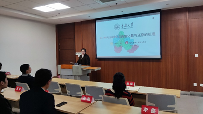 随后, 博士研究生李鑫以“QM/MM方法探究漆酶催化氧气还原的机理”为主题,详细讲述了她的研究过程。逻辑缜密,有条有理,向同学们展现了研究者的清晰思路,同时,一些有趣的研究焦点也吸引了大家的目光,引发了同学们的热情提问。