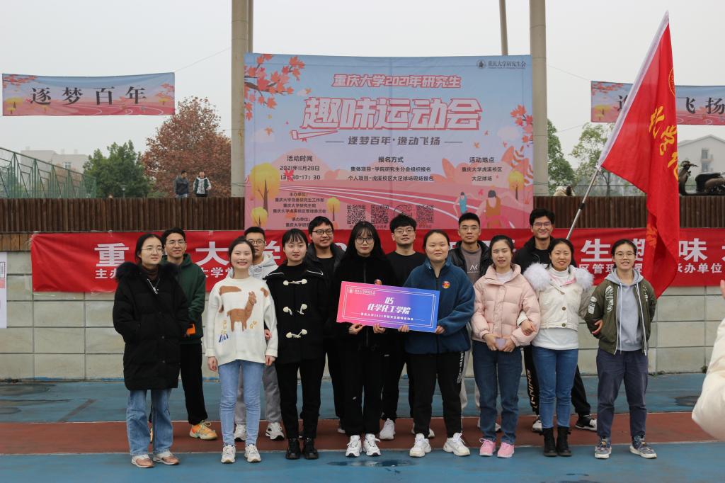 为体现重庆大学研究生良好风貌,展现当代研究生青春活力,2021年11月28日13:30,由重庆大学研究生会主办的第八届重庆大学研究生趣味运动会于虎溪校区足球场顺利举行。此次 代表队由杨镜带队,杨颗君、刘真、柴同庆等16名队员参加比赛。