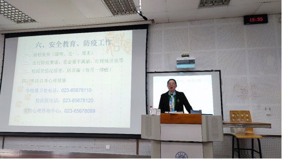 3月3日下午2:30, 于虎溪校区D1125召开2020级年级大会,辅导员伍丽及全体2020级学生出席了本次会议。