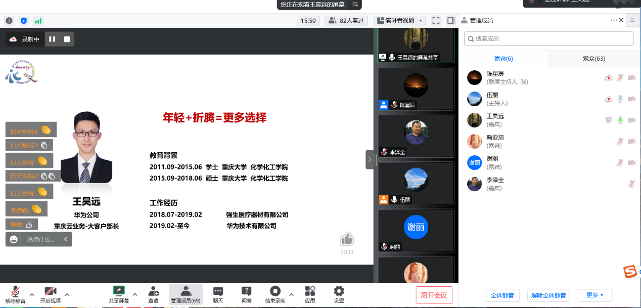 90周年院庆系列活动——“锦绣华章”校友分享会第二场“年轻+折腾=更多的选择”在线上圆满举行。分享会由本科2020级辅导员伍丽主持,优秀校友王昊远主讲,学院党委副书记李泽全,学办全体老师及部分同学线上参会。本次分享会旨在通过对话优秀的青年校友,了解他们的成长经历,加深同学们对未来职业与人生道路选择的认识,帮助同学们从容面对问题与挑战,做好学业和职业生涯规划。