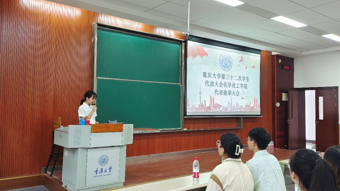 2023年9月20日中午13:30,重庆大学第三十二次学生代表大会 代表选举大会于虎溪校区D1134开展,该大会由组织部部长王丹阳同学主持, 党委副书记李泽全老师、团委书记陈星辰老师出席及 学生代表参与。